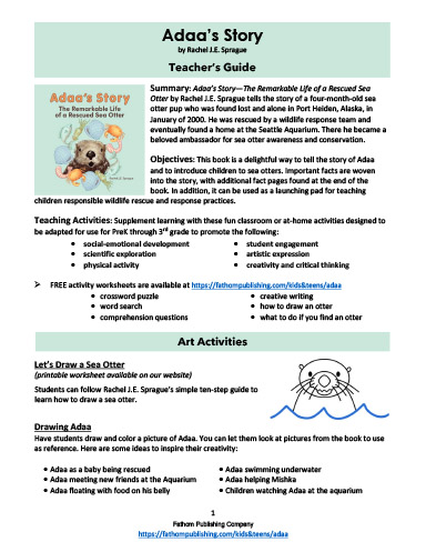 At Fathom Publishing, it is our desire that the books we publish be educational as well as enjoyable. Many of our books for Kids & Teens are excellent additions to the classroom, whether at home or in a traditional school setting. We are pleased to provide Teacher's Guides as well as printable worksheets absolutely FREE.