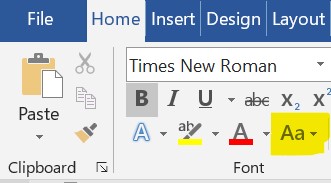 Select the text you wish to change. Then click the arrow next to Aa highlighted above for the dropdown selection of: