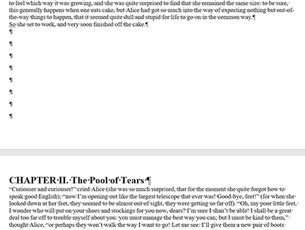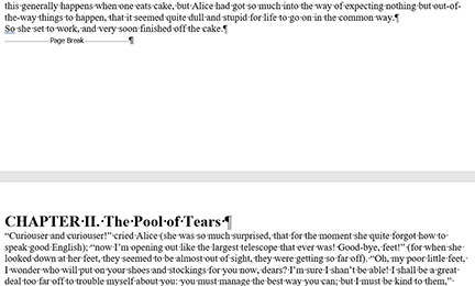 Note that there is no longer a string of Paragraph Marks There is a single code indicating a page break. Edits in Chapter I will not change where the page break to Chapter II occurs and Chapter II will always start at the top of a new page.
