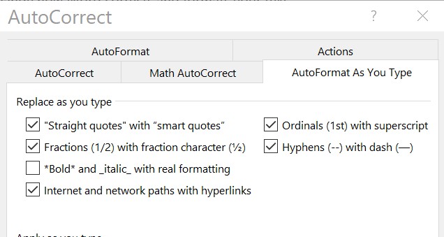 If the "Straight quotes" with "smart quotes" box is checked, Word® will automatically replace as you type.
