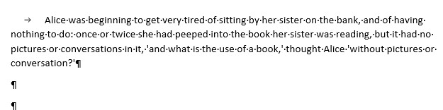 Codes Shown, note the dots between words, the arrow for the tab and the backwards P at the end of the paragraph: