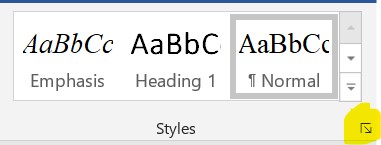 To open the Styles window, click the small arrow at the bottom right of the Styles box at the top of the screen.